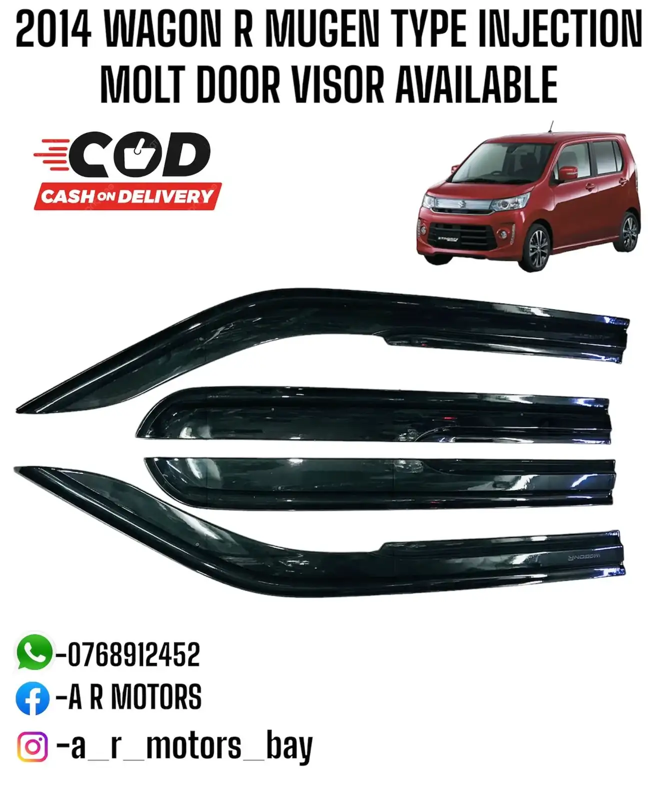 Upgrade your 2014 Wagon R with Mugen-type Injection Molt door visors. These visors allow ventilation while protecting your vehicle’s interior from rain, dust, and sun glare. Available at low prices in Sri Lanka, delivered near you with islandwide delivery including Colombo, they are ideal for car enthusiasts looking for stylish, functional, and affordable upgrades. Designed for a precise fit, these visors seamlessly enhance the Wagon R’s exterior aesthetics while offering practical protection. Durable and easy to install, they improve driving comfort and modernize your car’s look, making them an essential accessory for everyday use and premium car styling.