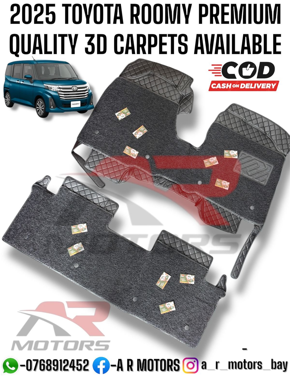 Upgrade the interior of your 2025 Toyota Roomy with premium 3D carpets, providing protection from dirt, spills, and wear while enhancing cabin aesthetics. Crafted for a perfect fit, these carpets elevate the interior’s comfort and style. Available at low prices in Sri Lanka, delivered near you with islandwide delivery including Colombo, they are ideal for car modification enthusiasts seeking durable and stylish interior upgrades. Designed with high-quality materials, the carpets are easy to clean, long-lasting, and complement the vehicle’s modern design. Improve both functionality and appearance with these premium 3D carpets for your Toyota Roomy.