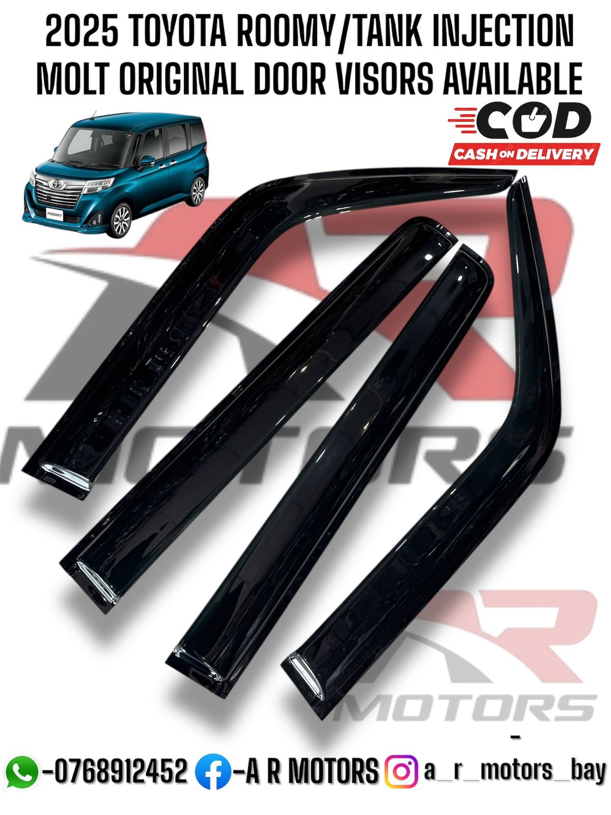 Upgrade your 2025 Toyota Roomy or Tank with original Injection Molt door visors for improved comfort and protection. These visors allow fresh air circulation while shielding passengers from rain, wind, and sun glare. Available at low prices in Sri Lanka, delivered near you with islandwide delivery including Colombo, they are perfect for practical and stylish car modifications. Designed for a precise fit, these door visors enhance the vehicle’s exterior appearance while maintaining durability. Ideal for everyday driving, they provide long-lasting protection and comfort, making them an essential accessory for Toyota Roomy and Tank owners.