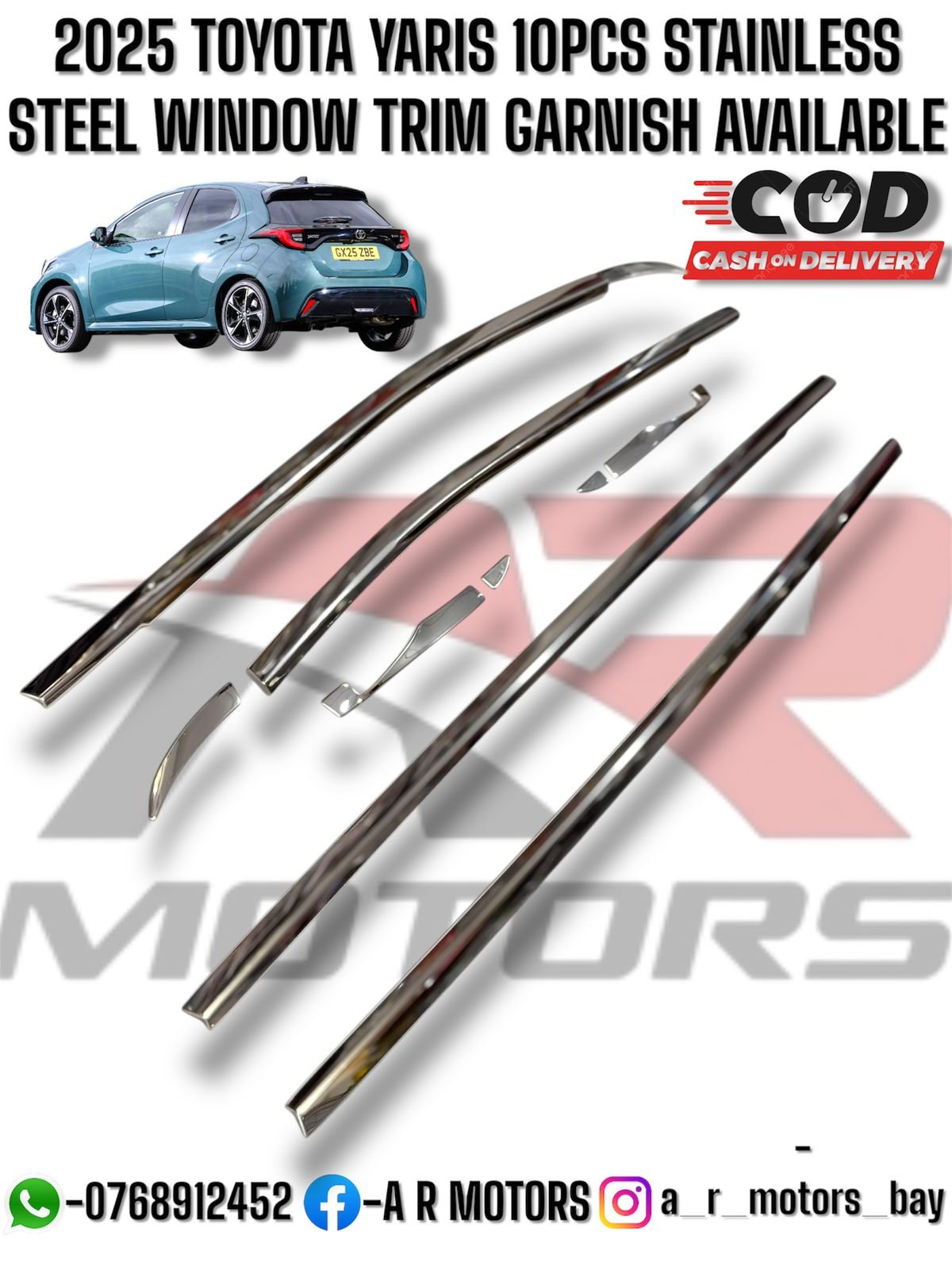 Upgrade your 2025 Toyota Yaris with a stainless steel window trim garnish, adding a polished metallic shine and protection to window edges. Perfect for car enthusiasts in Sri Lanka seeking affordable exterior modifications, it is available at low prices and delivered near you with islandwide delivery including Colombo. Crafted for durability and precise fit, the trim enhances the Yaris’s modern design while providing long-lasting protection. Stylish and practical, it improves your car’s side profile, giving it a premium look while guarding against wear and tear. A perfect combination of aesthetics, functionality, and high-quality finish.