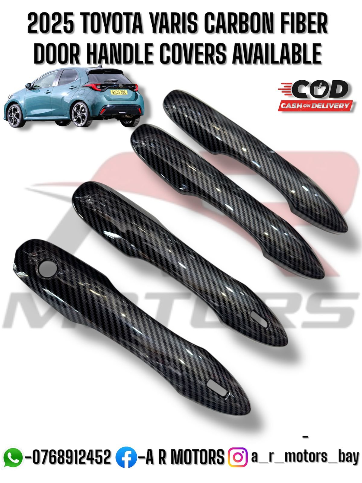 Add a sporty and premium touch to your 2025 Toyota Yaris with carbon fiber door handle covers. These covers protect handles from scratches and wear while elevating the car’s overall exterior style. Available at low prices in Sri Lanka, delivered near you with islandwide delivery including Colombo, they are perfect for car modification enthusiasts seeking affordable and high-quality accessories. Precision-engineered for a seamless fit, they complement the Yaris’s modern design while providing long-lasting protection. Upgrade your vehicle effortlessly, combining style, durability, and functionality with these sleek carbon fiber door handle covers for everyday driving and premium aesthetics.